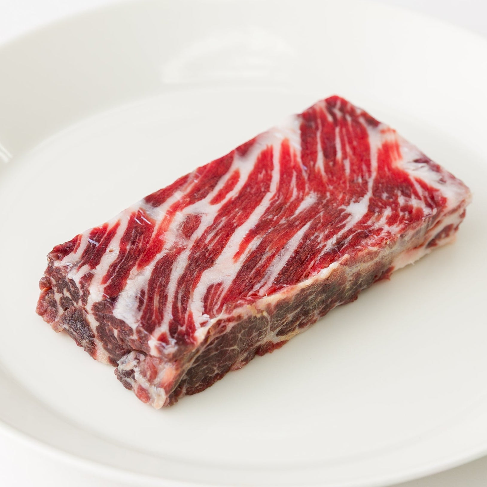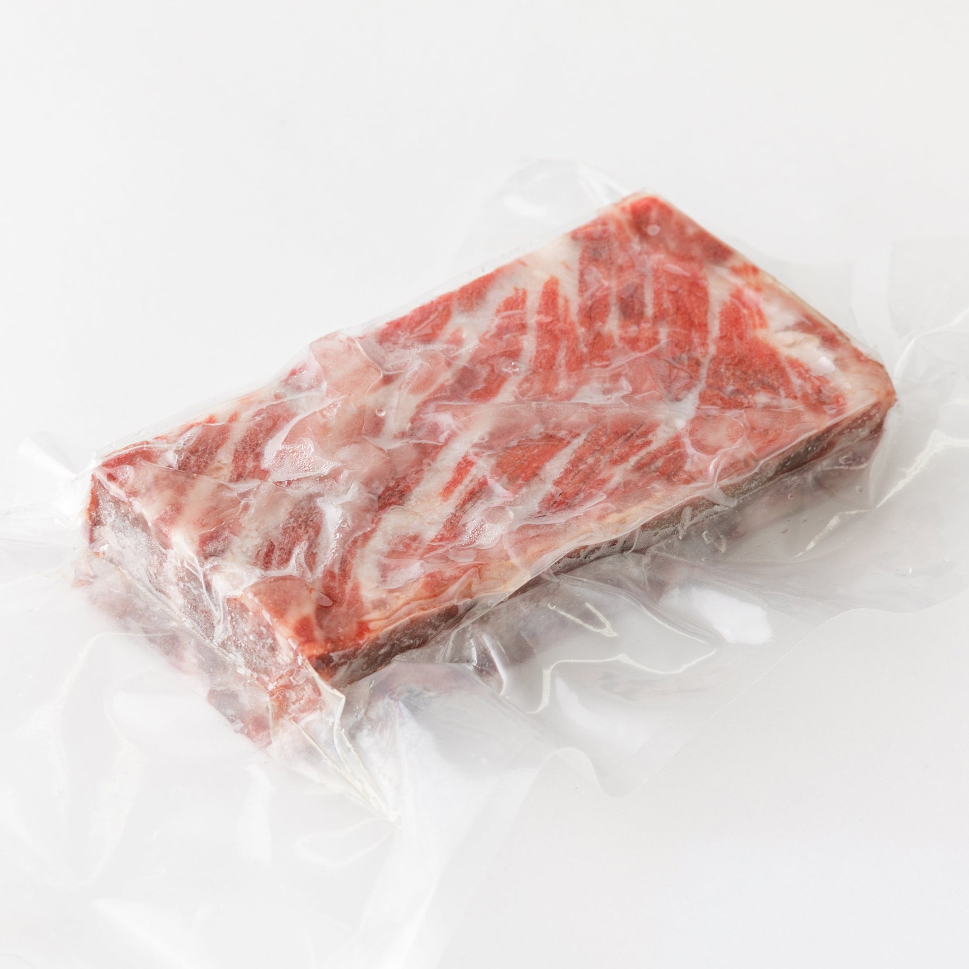 ニタリ鯨の手羽の付け根の部位の冷凍品で、脂が鹿の子状に入っています。